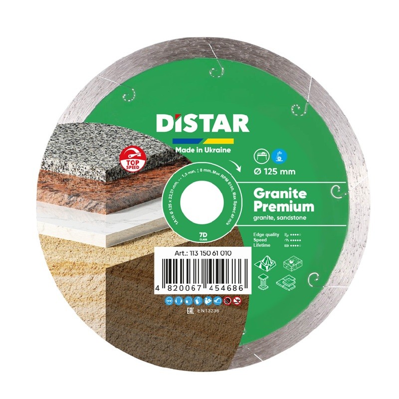 Teemantlõikeketas DISTAR GRANITE PREMIUM on mõeldud professionaalseks kasutamiseks kõvade materjalide nagu graniidi, marmori ja gabro lõikamiseks. Samuti on võimalik lõigata keraamilisi plaate.