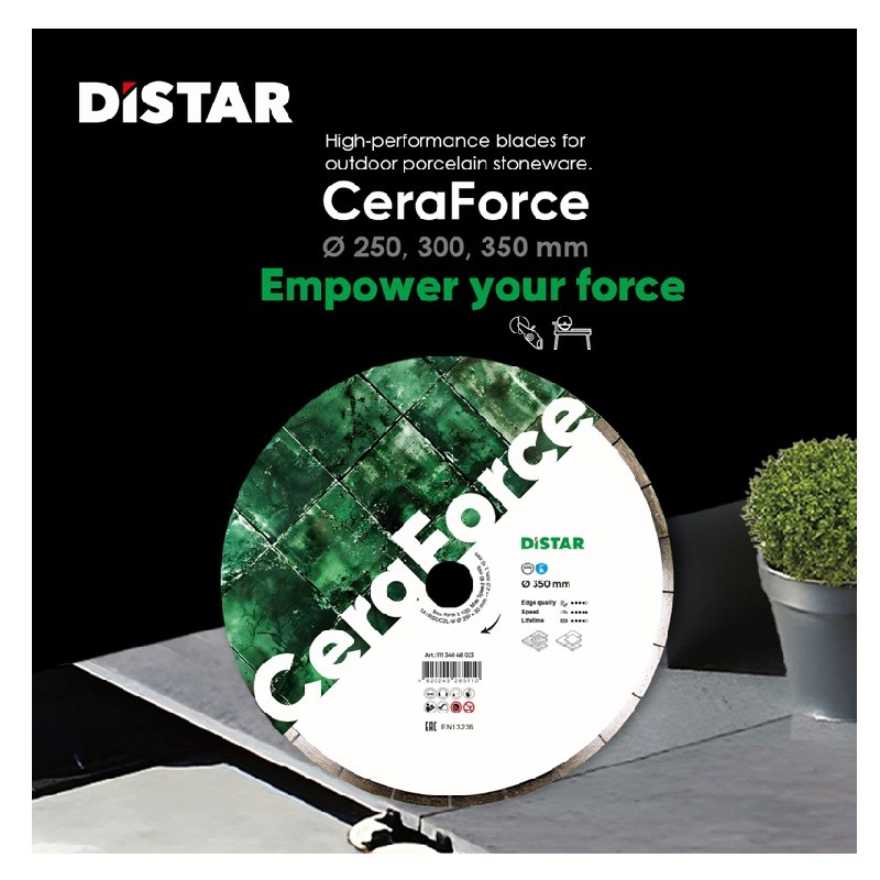 Üha enam kasutatakse portselanplaate välistingimustes – basseinide ümbruses, terrassidel, radadel. Need on eriti kõvad ja paksud (kuni 20–30 mm), seega nõuab nende lõikamine äärmiselt usaldusväärset varustust. CeraForce lõikeketas on spetsiaalselt selliste ülesannete jaoks loodud. Sobib töötamiseks laua- või käsitsi (elektriliste või bensiinimootoriga) märglõikuritega.
