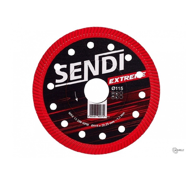 SENDI EXTREME 115mm läbimõõduga teemantlõikeketas 22,23mm kinnitusavaga, mis on loodud keraamiliste ja kiviplaatide, sh glasuuritud portselanplaatide kiireks ja täpseks lõikamiseks.